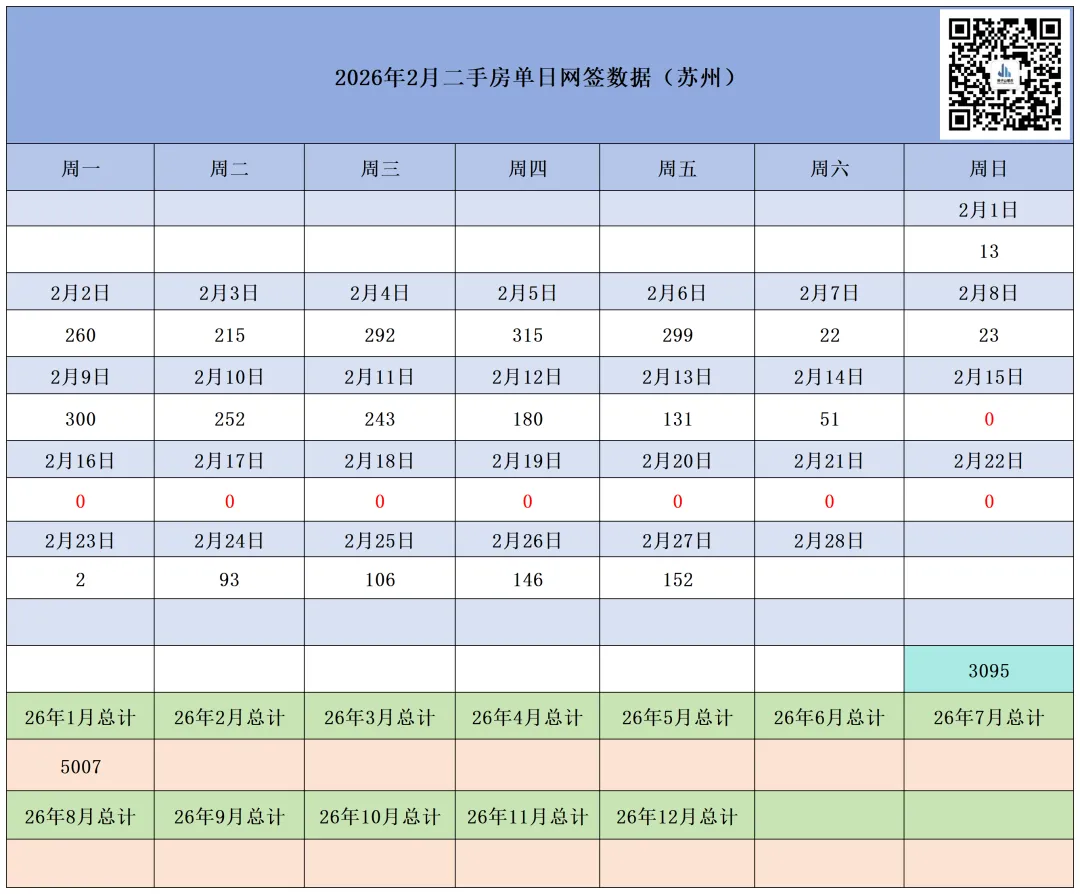 本月截至2月27日(周五),苏州六区住宅累计网签【3769套】,其中二手房累计网签【3095套】、新房累计网签【674套】。