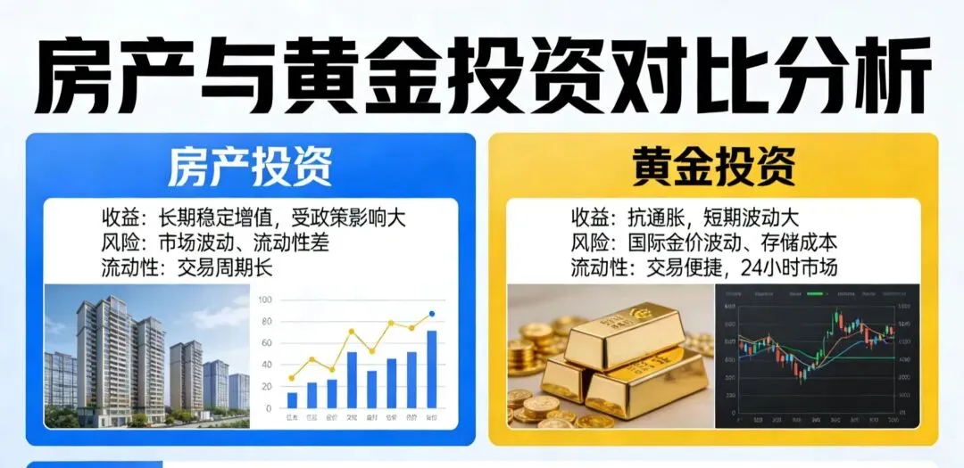 当前环境下黄金更灵活,房产更看地段——最佳策略是"黄金打底+核心房产"的组合配置,而非二选一。