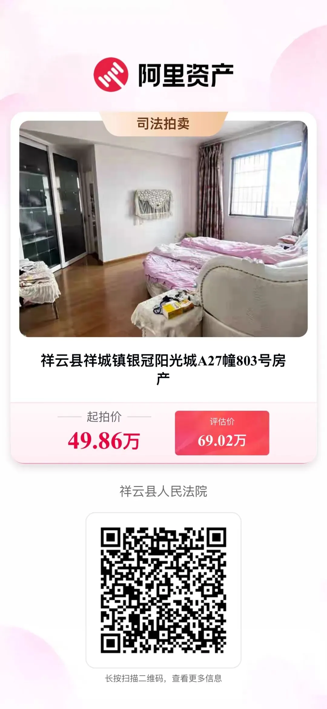 位于祥云县祥城镇银冠阳光城A27幢803号房产第二次拍卖公告