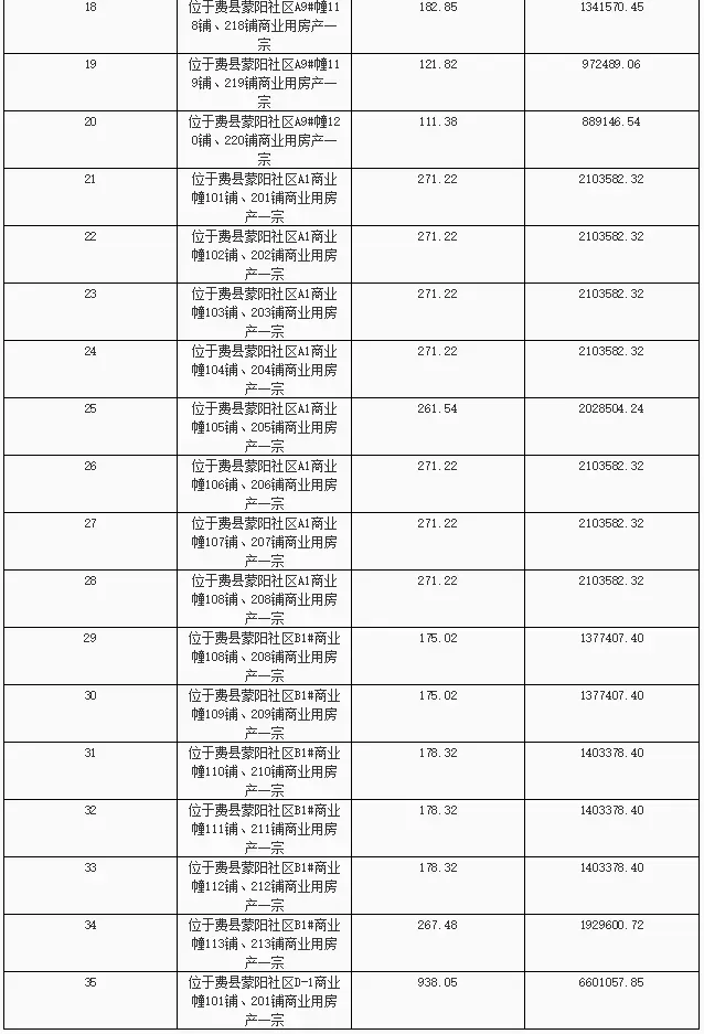 费县蒙阳社区A区、B区、D区商业房产拍卖公告