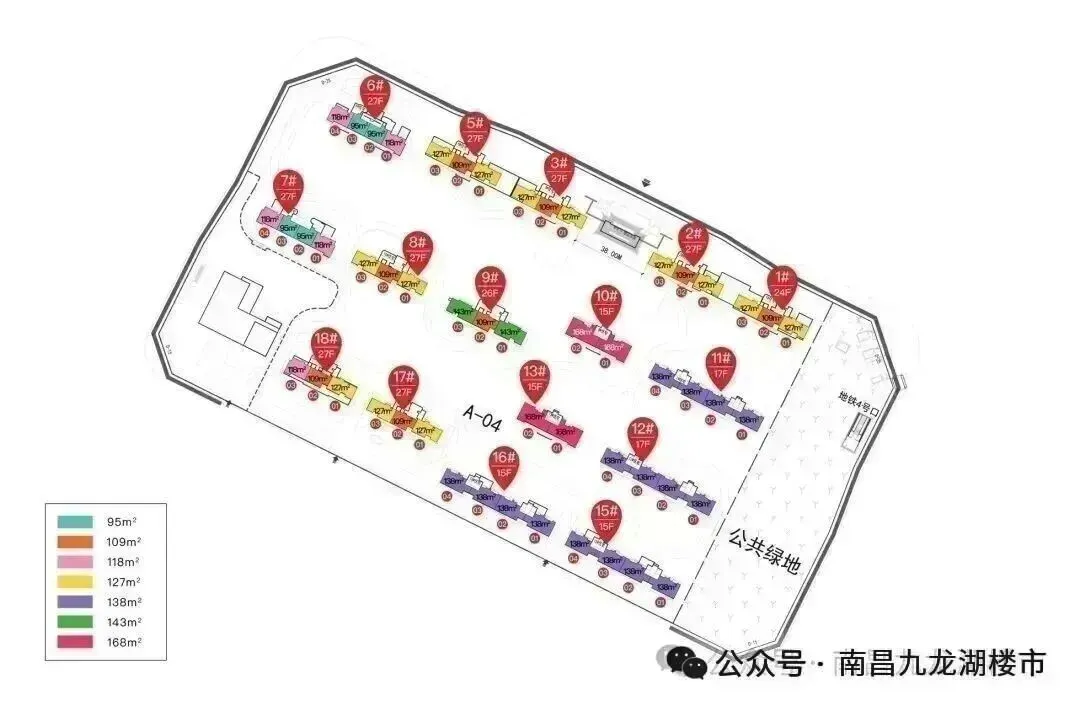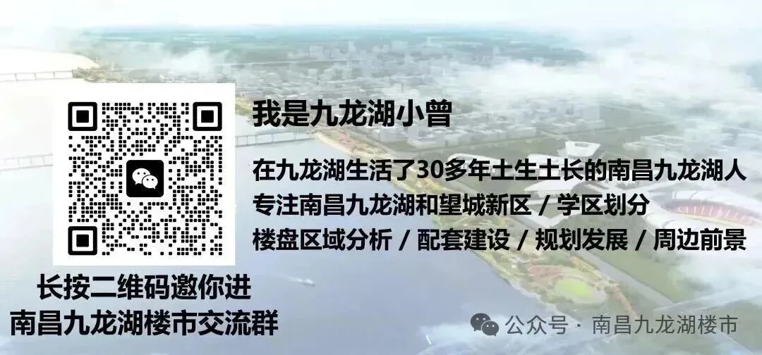 江山云著,距离南师附小九龙湖校区2.32公里,距离南昌外国语九龙湖初中1公里,距离南昌地铁四号线安丰站500米 ,位于赣江南大道以西,龙兴大街以北,城运路以东,南洲街以南,共7栋住宅和1栋超高层,总户数367户,容积率3.5,绿地率30%,第一太平戴维斯物业5元,2026年6月毛坯交房,机动车位1506个,其中地上停车位62个,面积约166平4/2/3-210平5/2/3-300平5/2/3-430平6/2/3-630平6/2/3左右,一梯一户设计,毛坯交付,小学读南师附小九龙湖校区和中学读南昌外国语学校九龙湖初中部。地铁景秀未来,距离南大附中科创学校2公里,距离地铁二号线南路站650米,位于赣州大道以南,九龙大道以东,三清山大道以西,九溪嘉园,其中西地块共计 1 0 栋 15-17层小高层住宅,东地块共计 9 栋15-17层小高层住宅,部分楼栋有架空层,一所 6 个班幼儿园,机动车位1097辆,地上109个,地下988个;非动车位560辆;容积率为1.54,建筑密度14.73%,绿地率35.01%,万科物业2.6元,面积有90平三室两厅一卫,115平三室两厅二卫,133平四室两厅二卫,总户数789户,读南大附属科创学校【2025年9月开学】。
