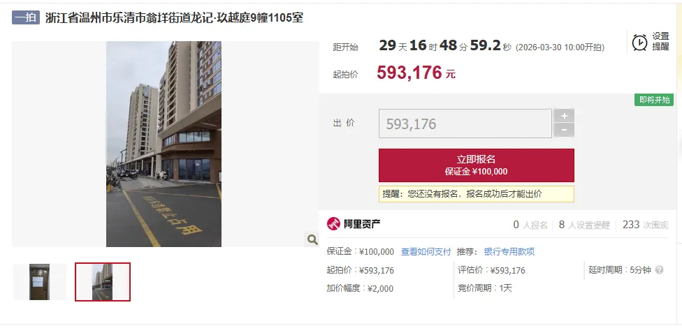 近日,乐清一房产被阜阳市颍州区人民法院司法查封,如今上架司法网拍。