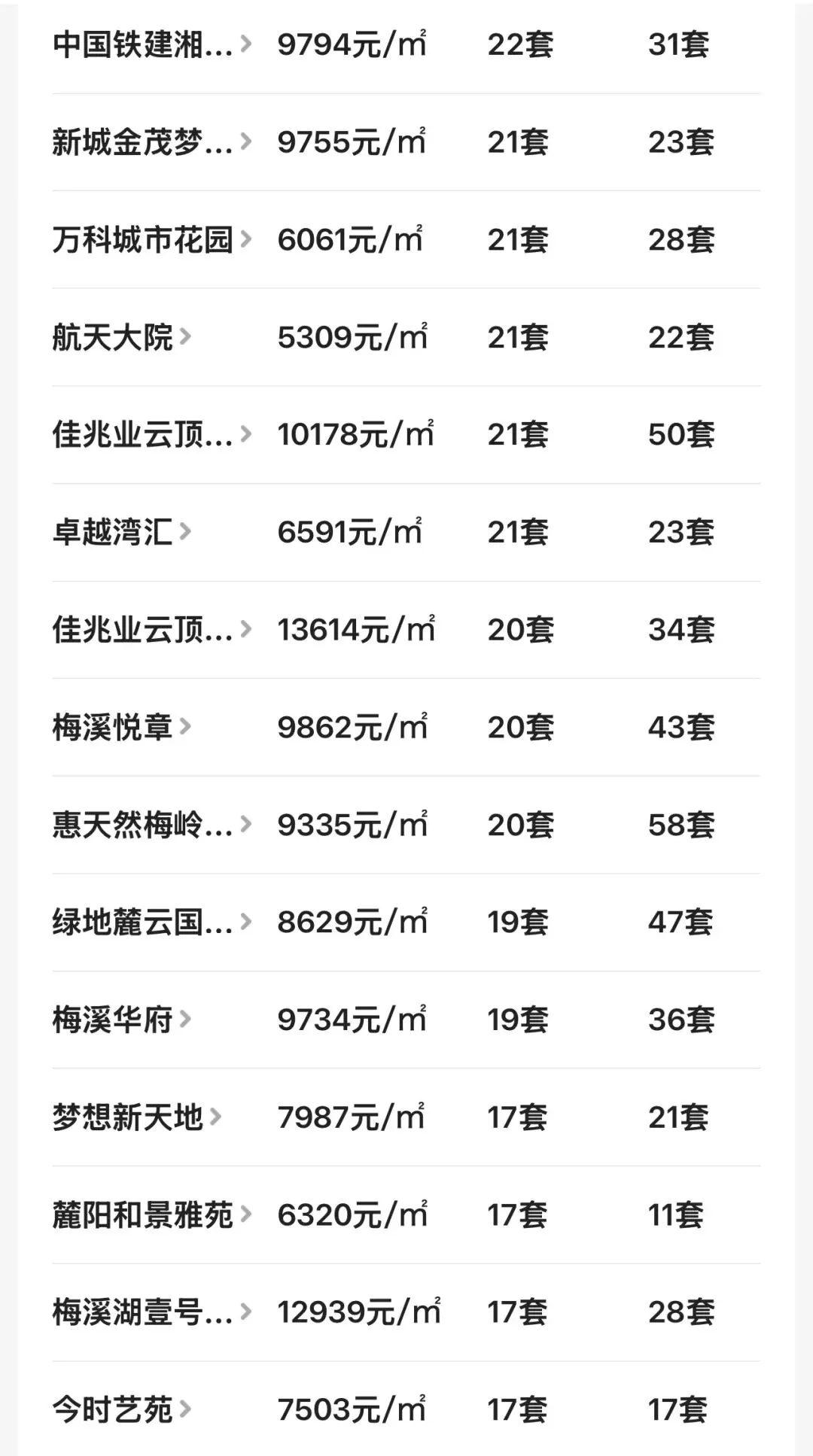 就连梅溪湖二期的招商华发依云曦城也卖了50套,中海麓山境也卖了44套......