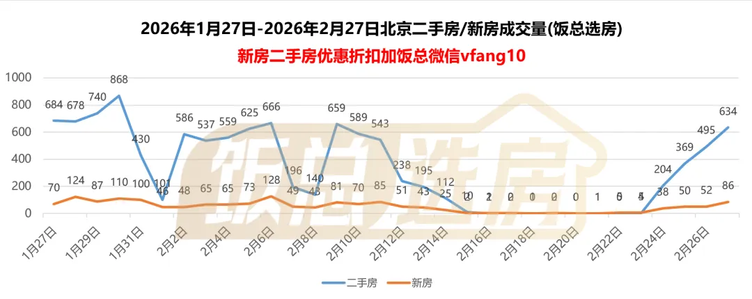 北京二手房住宅网签7464套,27号网签634套
