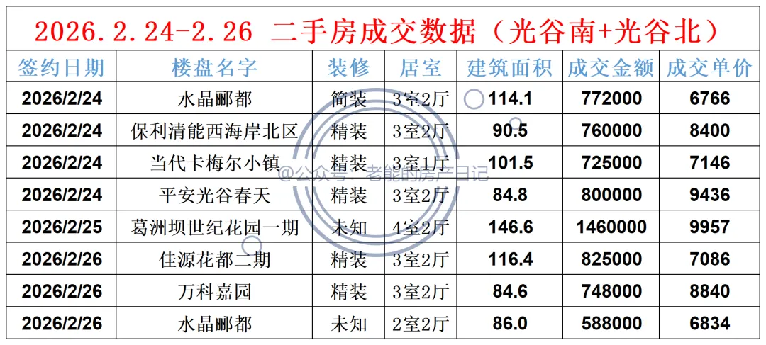 2026.2.24-2.26 二手房成交数据 (光谷南+光谷北)