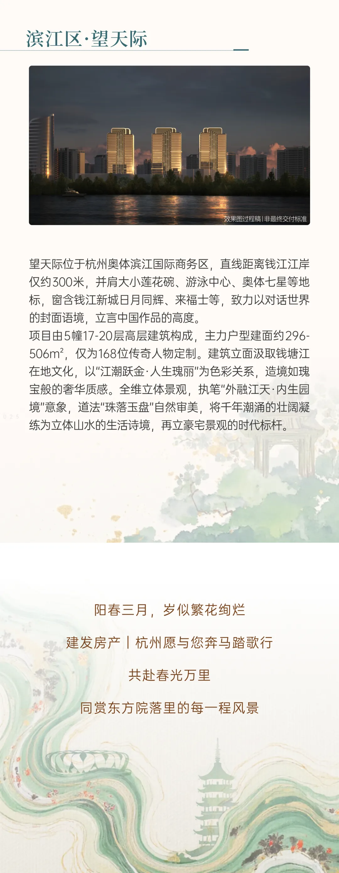 本资料为要约邀请,不作为要约或承诺,相关内容不排除因政府相关规划、规定及开发商调整而发生变化,买卖双方的权利义务以双方签订的《商品房买卖合同》为准;对项目周边环境、交通、教育及其他配套设施的介绍,旨在提供相关信息,不意味着本公司对此作出了承诺;本宣传不对学区及入学条件做任何承诺,学校划分及入学条件以政府相关部门最终批准方案为准。本资料效果图为过程稿仅供示意,存在后续修改可能,最终以双方签订的《商品房买卖合同》及实际交付为准;公司保留对宣传资料修改的权力,敬请留意最新资料;建发房产全国服务热线 400-846-3636。本资料发布日期2026年2月,有效期1个月。交付标准以《商品房买卖合同》为准,受制作批次、市场变化等限制条件或开发商不可控制的原因,开发商在保证以上建设质量的情况下可能进行更换品牌,如有变动,恕不另行通知。