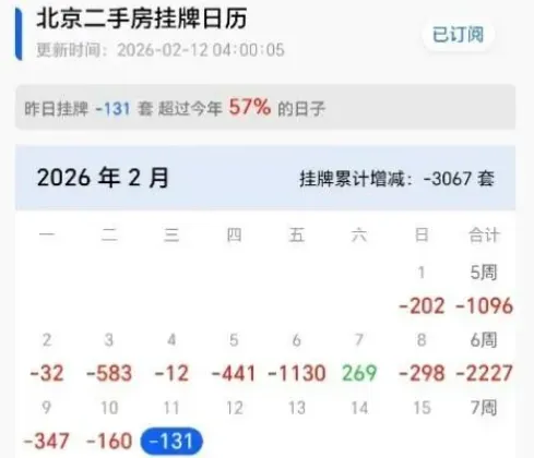 北京:挂牌量连续四个月下降,2月份单月减少三千多套。