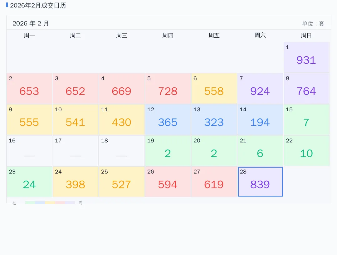 上海楼市成交日历 2026.02.01-2026.02.28 | |||||||