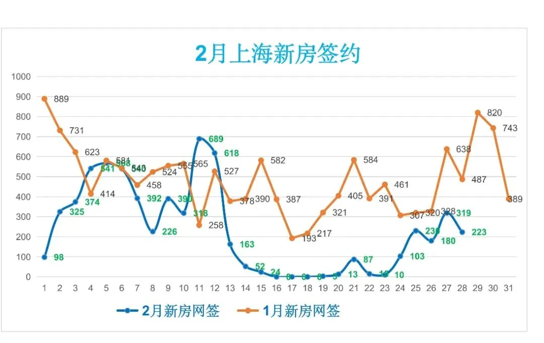 截至2月28日,上海2月新房共成交约6511套,二手房共成交11315