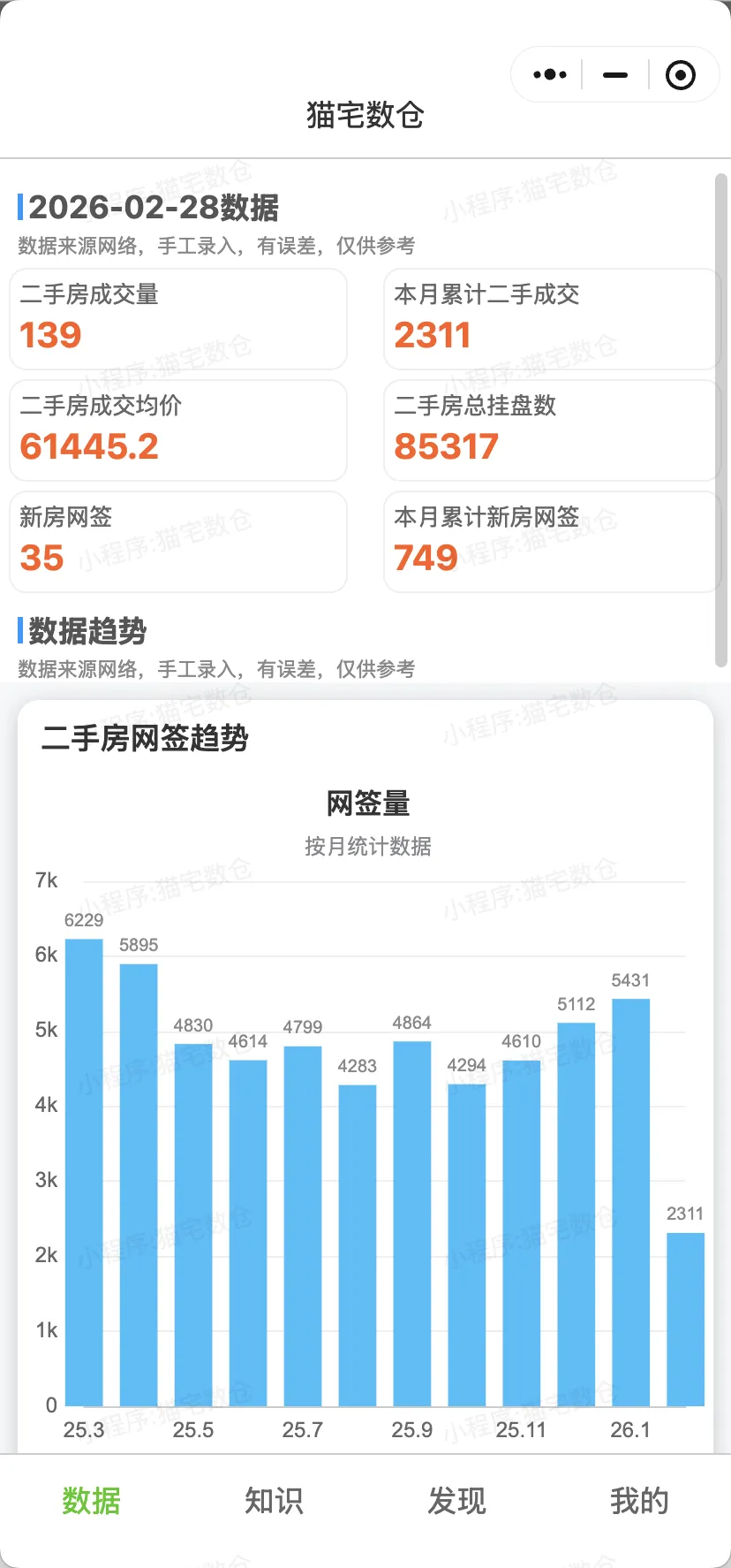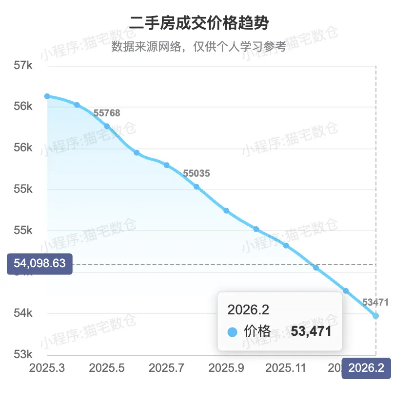 按例,本月继续更新上个月总体二手网签数据:当月成交量、历史成交量趋势、成交价格。数据维度,深圳2026年2月,总体上来说,深圳当月成交2311套,对比上个月成交量上腰斩不过这里腰斩的原因其实很简单,每年的1月或者2月会遇到春节假期,往往这段时间数据会失真,所以也没必要太过于较真”这个月的数据怎么了“当然了,也不是数据毫无意义,每次的数据变动,都反映了一定的经济活动变迁。比如2月的数据反映了春节活动的到来,大部分地方都停工停业,城市居民很多回老家休息庆祝节日,城市经济活动变缓,但是对应的三四线城市经济活动活跃了。2月的楼市价格持续下探,跟过去几个月的情况基本一样。那么有问题吗?其实还是上次的结论,从趋势来说,价格短期很逆转,价格的影响因素有很多,但是最直接关联的,大家可以参考租售比。为啥老说租售比呢,大家可以想想,如果一个房子租售比只有1%,但是存款利息可以达到2-3%,那么自然会觉得租房更划算。从交易角度,大家在成交不够活跃的情况,更愿意去压价,达到一个投资的安全区间。所以这里也不是唱空,就是纯粹从价值的角度看,大家心理都会一把尺子。当然了,现在确实租售比,不大行,不过还是很多人觉得房子有非常高的情绪价值,所以也继续会有很多低租售比的成交。整体来说,大家继续观察数据,多看数据,多想想数据背后意义。每次都有人问建议,那么还是那句话:如果说房子给了很高情绪价值然后经济压力很小,非常鼓励买房,有能力的人多买房可以促进经济发展。如果自己经济有危机,就多想想,实在不行就多聊聊价格,个人安全最重要嘛。后续的话,依然会继续踩盘,写真实踩盘情况,欢迎大家关注。然后想买房或者了解房子的朋友也可以加群交流,买不买都可以加,多交流可以让你有更多买房的认知。如果二维码过期了,可以公众号私信加群。一些数据说明:数据来源机构提供、私单录入、三方网络平台、群友提供、部分业主补充等,收集比较繁琐,一些数据在excel处理过程由于格式转换或者其他格式的来源处理转换的过程中,可能会出现误差,比如小区名的错别字、单价误差,作者已经纠正一批, 若发现错误数据,请在公众号后台私信或者留言纠正。数据大部分是住宅,可能存在一些商用、公寓、双拼、高评数据,注意甄别,若有疑问可以留言。最后整体数据不是全部的,仅为部分数据,数据整体不构成买卖建议,若有疑问依然可以单独留言。