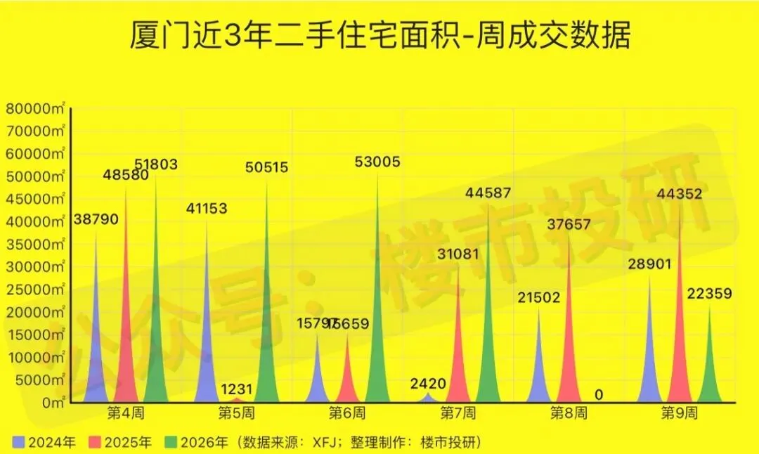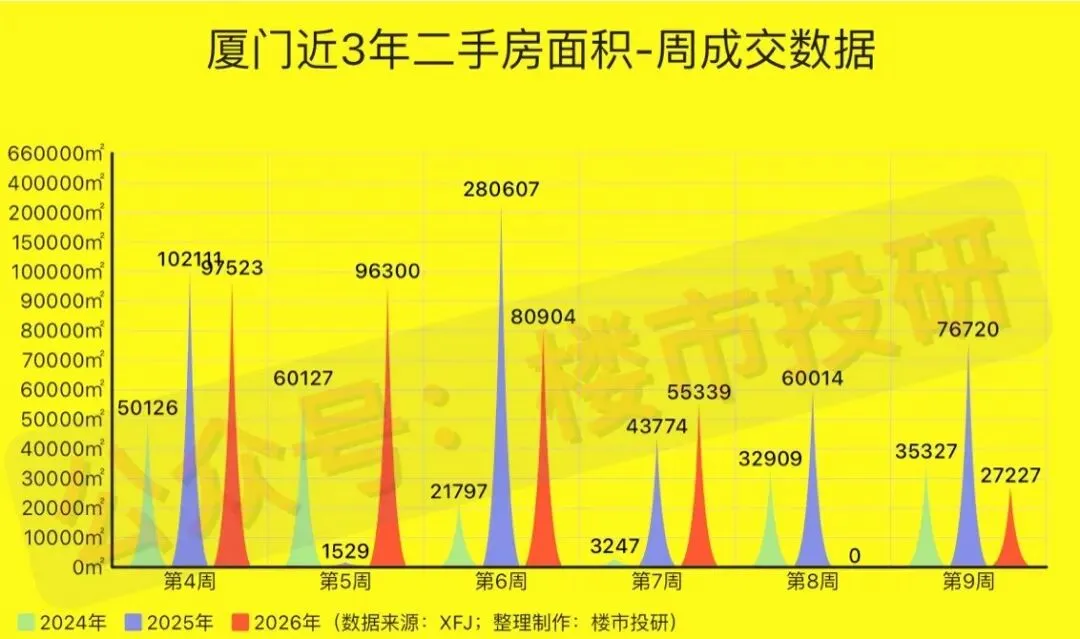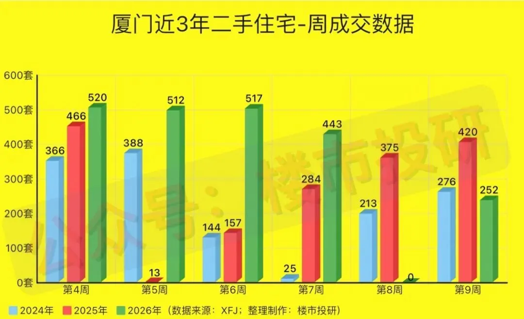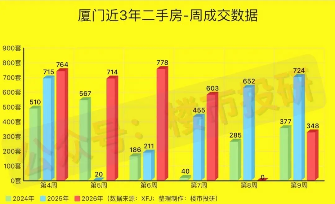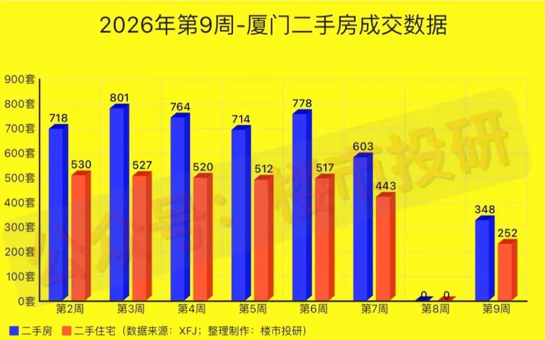一、厦门二手房“周”成交数据!(注:第8周为春节假期期间,所以无数据统计!第9周为节后第一周时间。)