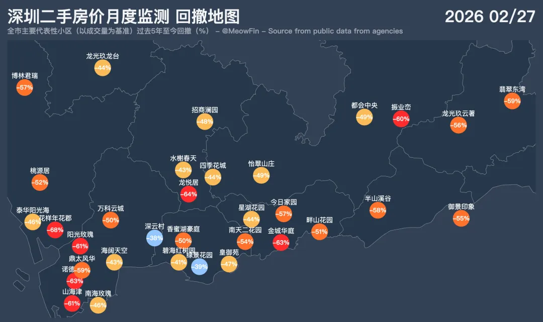 2026年2月深圳重点二手房跌幅可视化地图|数据可视化|地产|二手房价