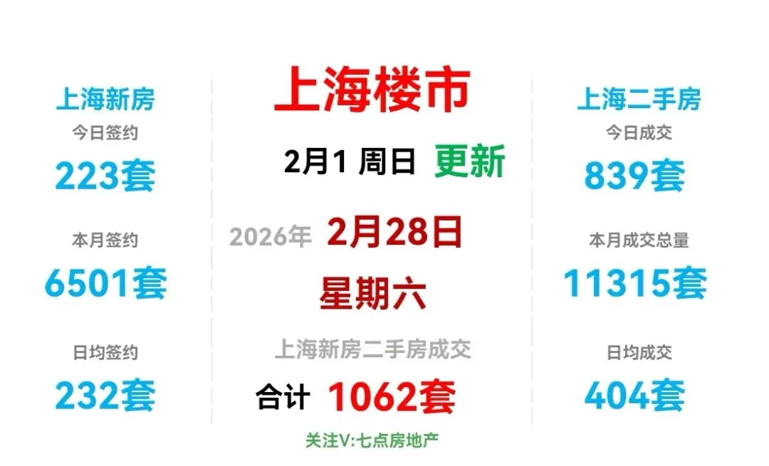 昨日(2月28日,周六),上海新房和上海二手房成交量合计1062套。