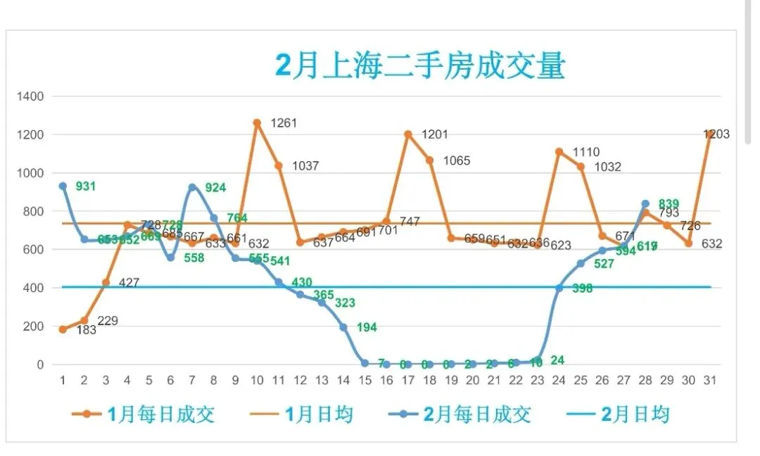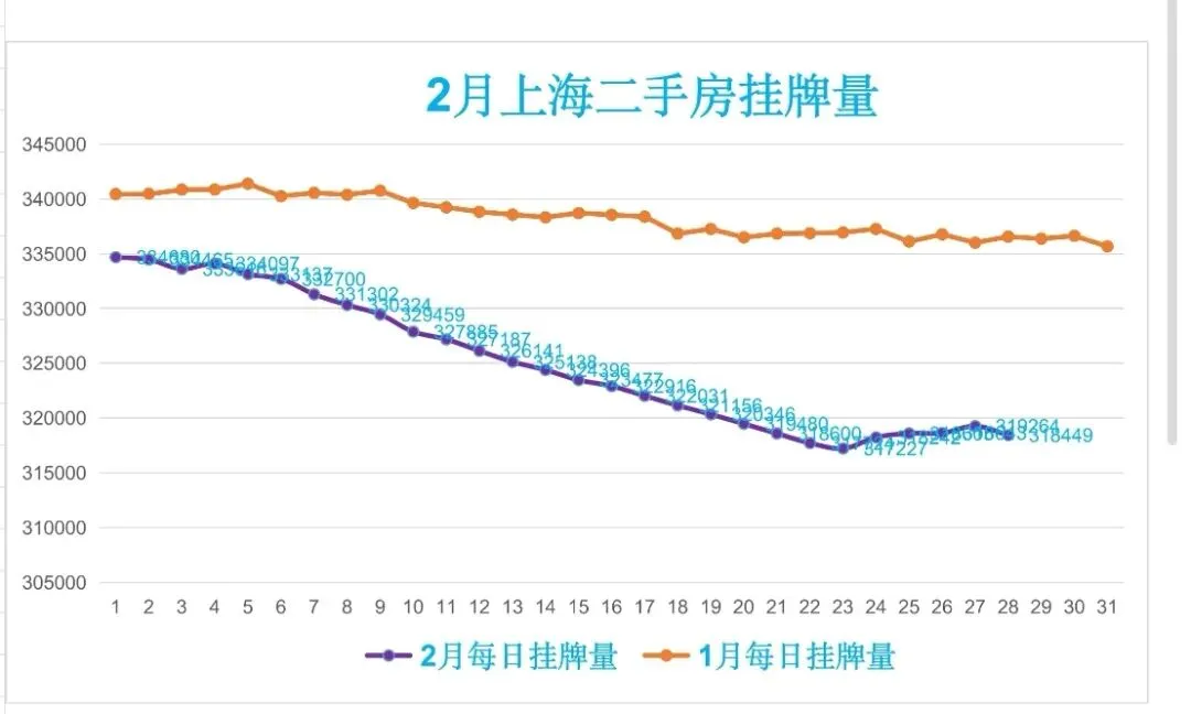 🏡2月,上海二手房成交量累计11315套,日均成交404套,较上个月日均减少332套(降幅45.11%)。