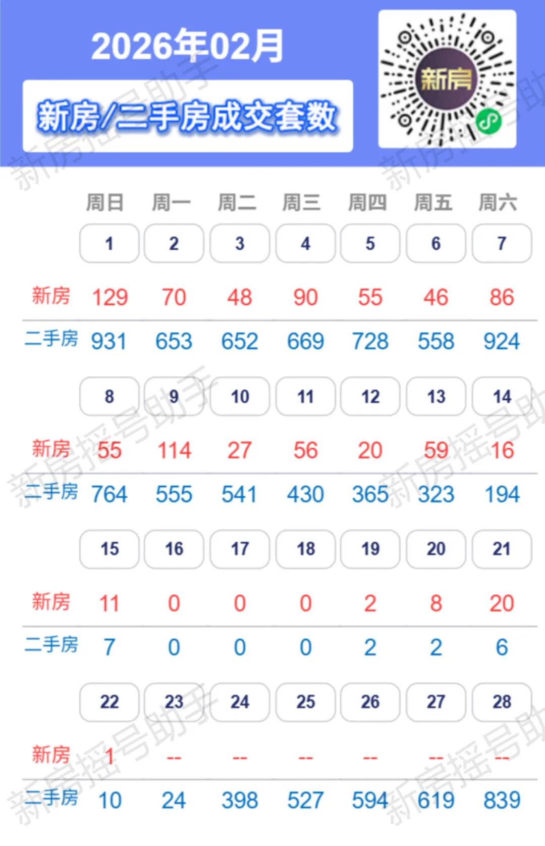 而同比同样春节假期也集中在2月的2024年,7500套的网签总量,370套的日均网签量,与之相比,2026年的日均网签量更是足足高出了近60%。