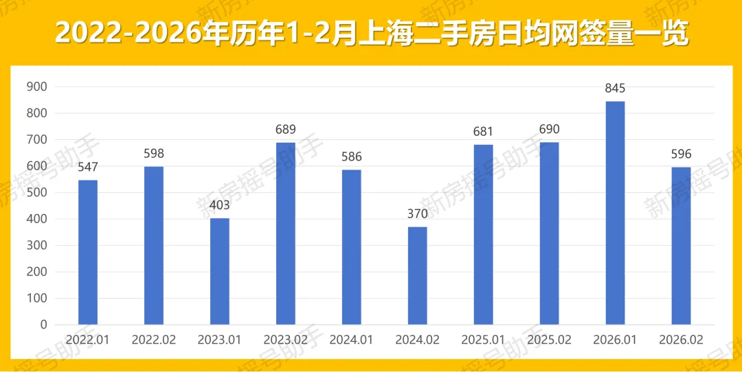 在剔除了春节核心假期的天数后,2月上海二手房的日均网签量来到596套左右,这个数字放在历史同期来看,绝对亮眼。