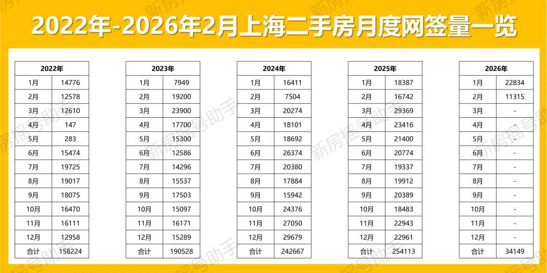据房地网统计,2026年2月上海二手房全月网签量1.13万套。相较于2026年1月二手网签2.2万套的亮眼数据,2月二手房的网签数据环比下降了约50%。