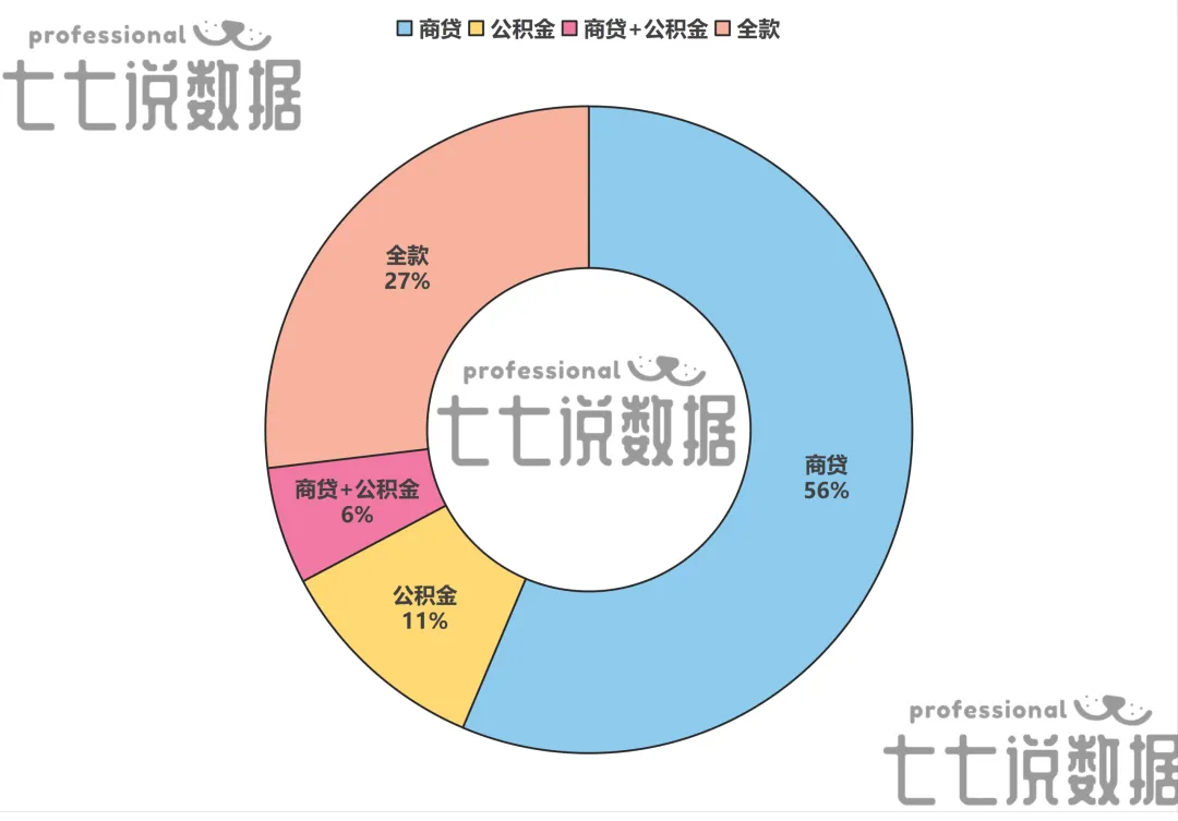在贷款方式上,超出一半的购房人群选择商贷;而约有四分之一的人选择了全款买房;商贷+公积金贷款的混合模式贷款占比最低,仅5.86%。