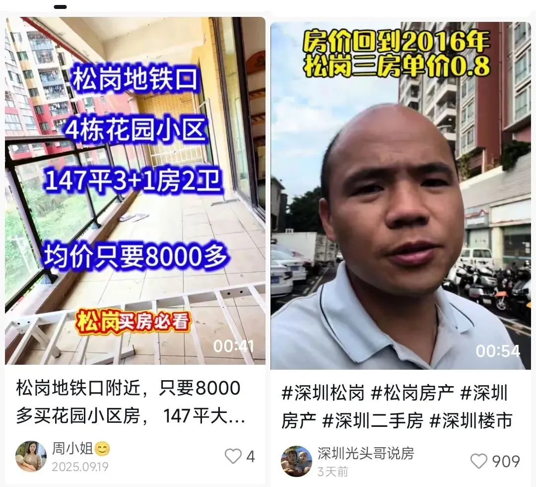 ~深圳宝安松岗整体二手房均价约 3.4-3.5 万 /㎡,如鸿盛花园等有报价7,900 元 /㎡,但多为小产权 / 历史遗留 / 无红本,或顶楼 / 低楼层 / 朝向差 / 产权有问题的特殊房源。抖音等平台的 “8000 多 /㎡” 多为业主急售、可议价的极端案例,非市场价。简单说:没有国家发的《不动产权证》(红本)的房子,统称小产权房。它的特点:建在集体土地上(村集体、宅基地)不是商品房,不能在住建局、不动产登记中心正常买卖,没有房产证,只有:合同、律师见证、村委证明、历史遗留回执等,价格通常只有同地段商品房的 1/3~1/2
