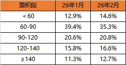 杭州2月各面积段二手房成交占比
