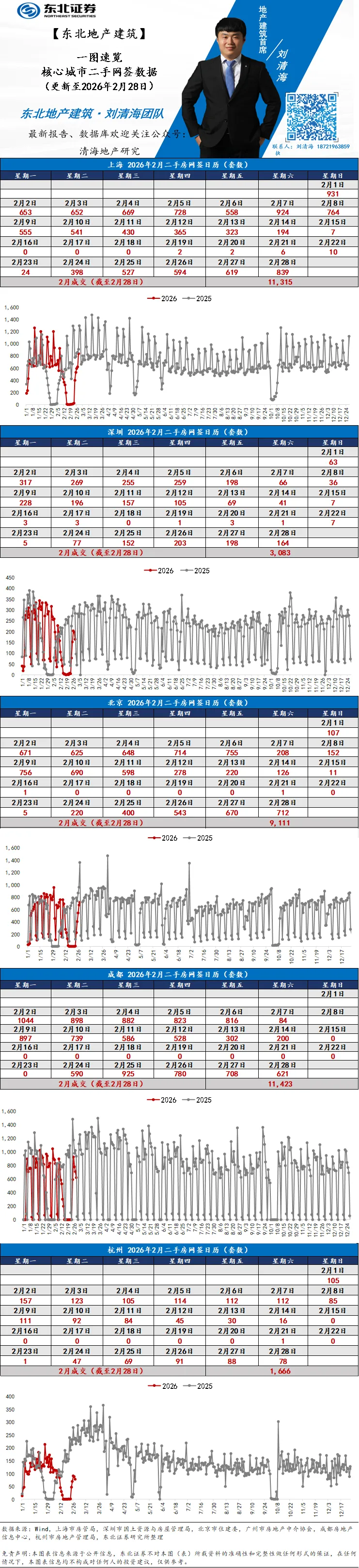 >【一图速览】核心城市二手房网签日历(20260228)丨东北地产建筑刘清海团队
