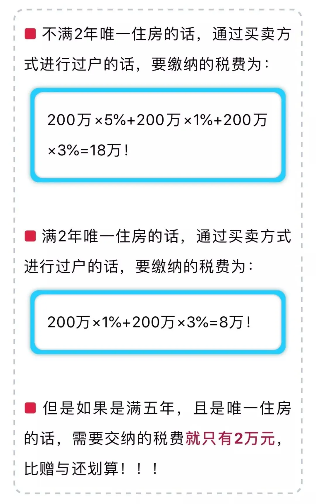 需要重申的是,被赠与一方一旦再发生买卖交易,税费将更大。