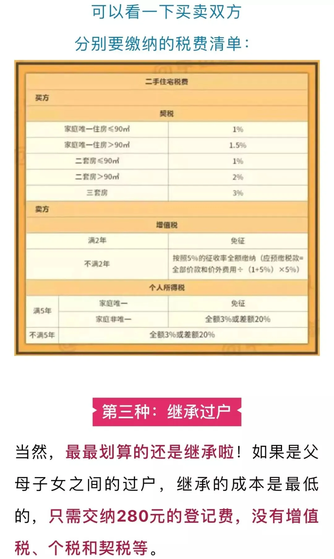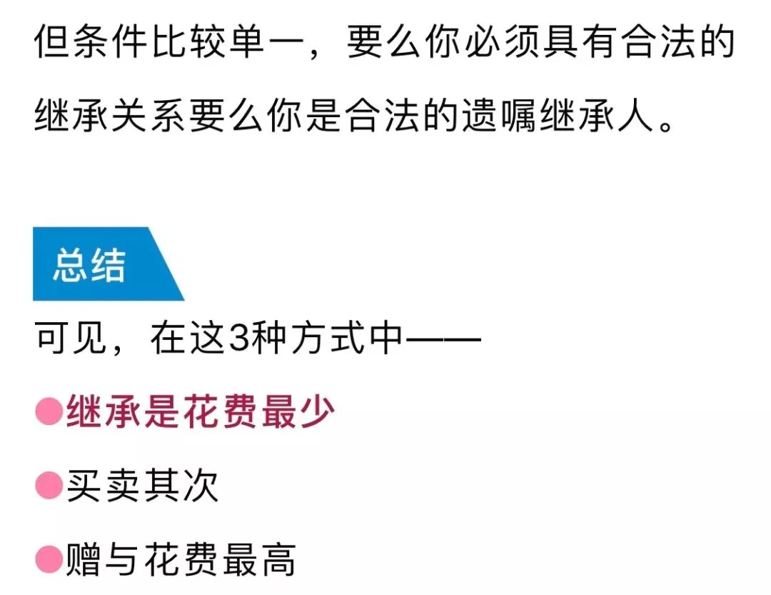 值得一提的是,传承房产的时候不能唯金额论,还需要考虑取得房产以后准备怎么处置。如果是打算再卖房的话,就要考虑后续个税缴纳的差异了。