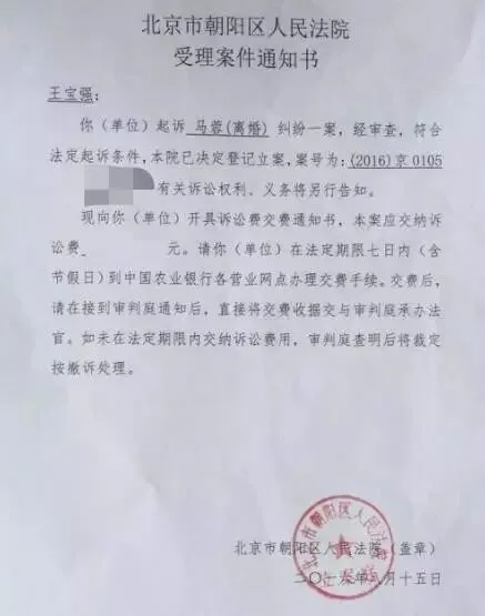 8月15日 ➔ 王宝强在律师陪同下到北京朝阳法院,起诉离婚