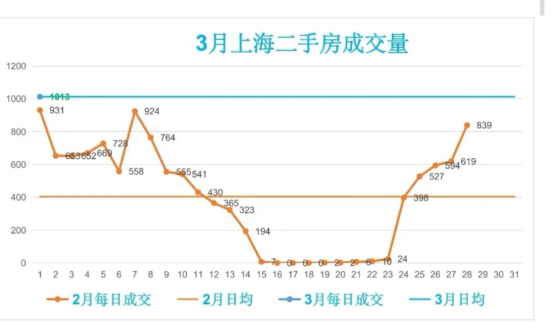 🏡3月,上海二手房成交量累计1013套,日均成交1013套,较上个月日均减少609套(降幅150.74%)。