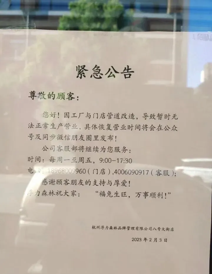 2020年9月,“浮力森林”恢复运营。而重开不到一年,再次停业。一直到2022年4月才再次重开,此时门店只剩下了位于和达创意设计园区内的工厂店。