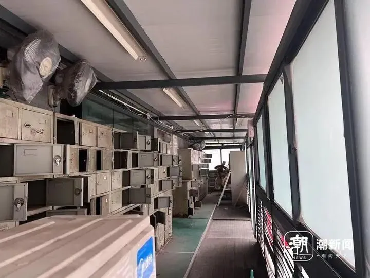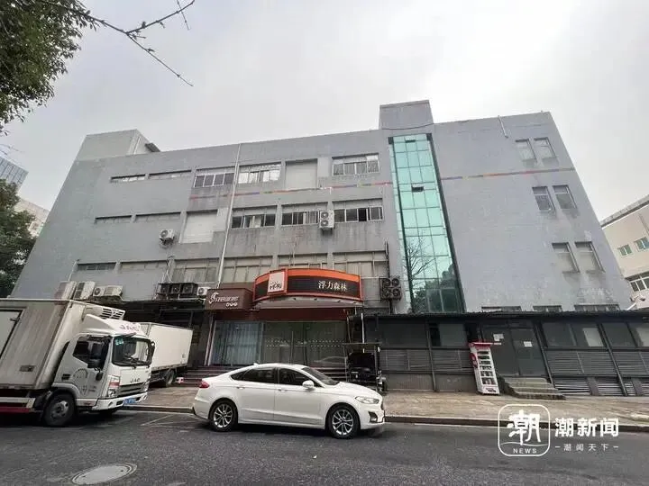 门店的同一幢是“浮力森林”的产品生产工厂。工厂看起来也没有生产的迹象。透过一楼开着的窗户,潮新闻记者看到了厂区门口的员工私人物品存储柜已经生锈。保安室也未有人员值守。一楼停放着三四辆运送货物的厢式货车,驾驶位已经积起了灰。