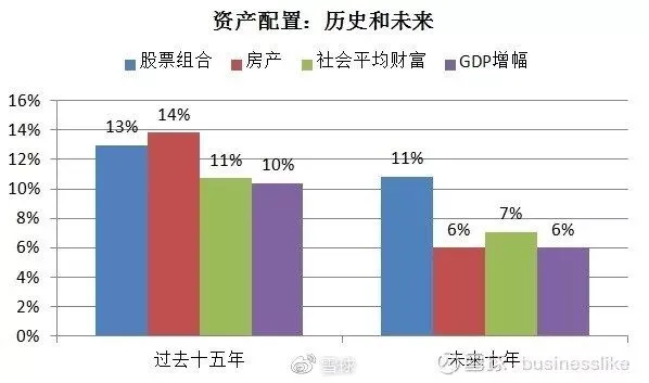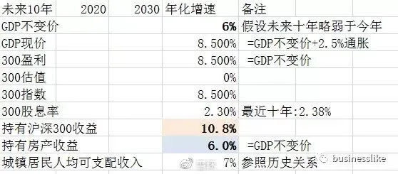 按照上面的逻辑,我们可以认为,未来十年,持有房产和一揽子股权(以300为例),长期收益率将如下: