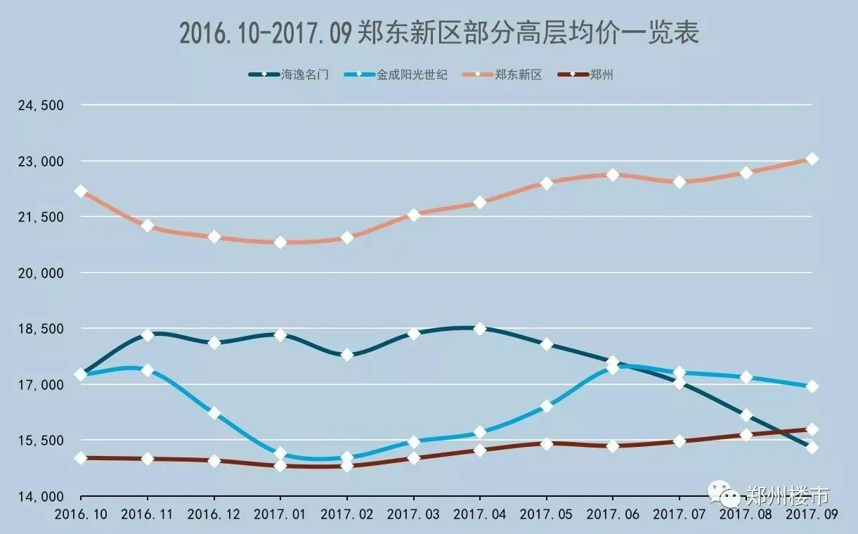 (3)2016.10-2017.09郑东新区部分小高层均价一览表