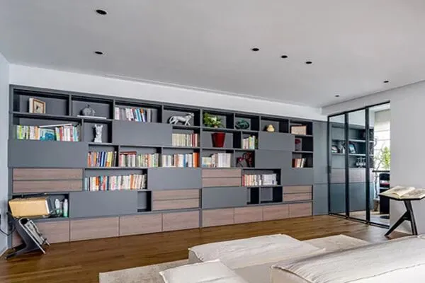 在客厅里落座了,顿时间,那一面黑色的书架墙,渗入了眼帘,让人移不开眼睛与注意力了。Alan有一个习惯,就是阅读,每天无论多忙,都要抽出时间进行阅读,家中藏书也不少。设计师Claire以优质的原木为素材,将一面墙设计为了简雅的书架了。在这个邂逅天花,密合墙壁的书架上,摆放着Alan所喜爱的书。这里绝对是家人文雅趣的彰显之处,浓郁的书卷气息从这时尚典雅的书架里流淌而出,释放出家文化深厚的底蕴来。在沙发上坐着,随手从书架上取下一本好书,在此细细品味,慢慢阅读,手边的醇浓咖啡,香气缭绕,此时,便是一天之中最为惬意的时刻了。而这一面书架墙也铺陈出家的高级感,满载着人文雅奢的韵味感。在客厅里,这一面墙,毋庸多言,它是一道不可或缺的靓丽风景了。