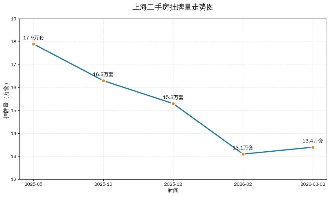上海二手房挂牌量从2025年5月的17.9万套,连续8个月持续下降;