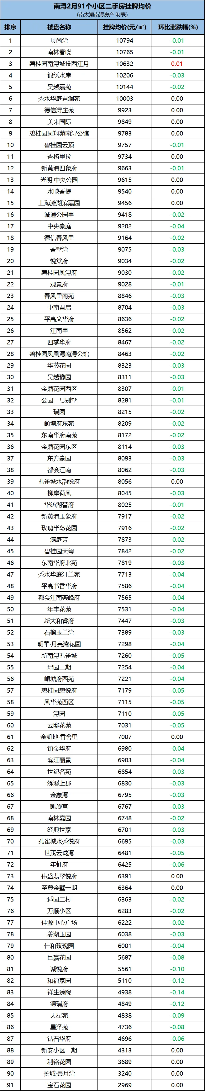 据贝壳平台数据,2026年2月南浔部分小区(91个小区)二手房挂牌均价梳理情况如下。
