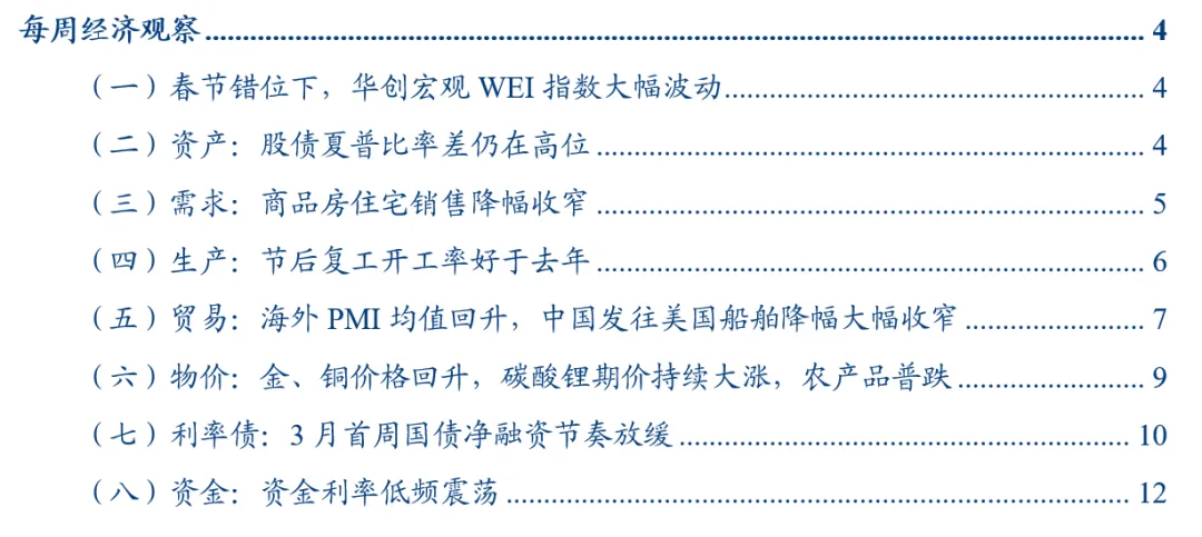 截至2026年2月22日,华创宏观中国周度经济活动指数(WEI)为2.50%,环比2026年2月15日的8.97%下行6.48%,主要是因为春节假期效应使得指数出现大幅波动。