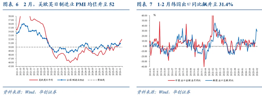 全球贸易需求:1)2月,美欧英日Markit制造业PMI均值升至52,1-2月平均51.7,去年12月50.3,去年同期均值48.9。2)1-2月,韩国出口同比升至31.4%,去年12月13.4%,去年1-2月为-5%(前年12月为6.6%)。3)越南1-2月上半月累计出口同比升至37.3%,高于去年12月20.7%,也高于去年同期20.1%。