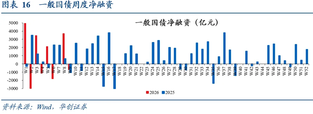 国债周度净融资更新:已公布3月2日当周国债净融资-710亿;1-2月国债累计净融资8288亿,去年同期为9464亿。
