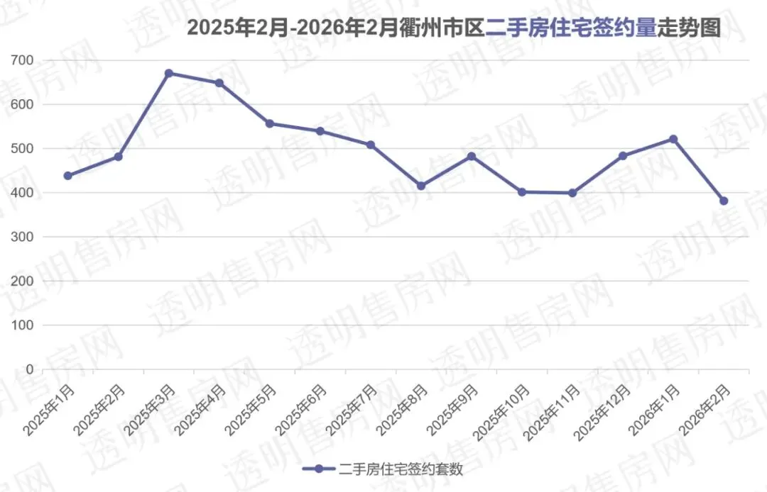 据衢州透明售房网数据统计,2026年1-2月衢州市区二手房住宅共成交902套,同比去年下降1.85%。