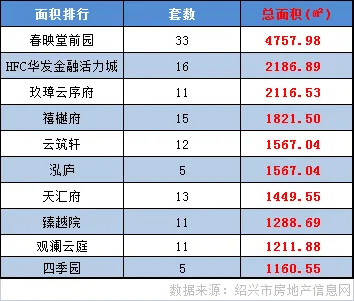 位于城南区域的春映堂前园成交33套,成交面积4757.98平方米,位居本月成交套数、面积排行榜首。