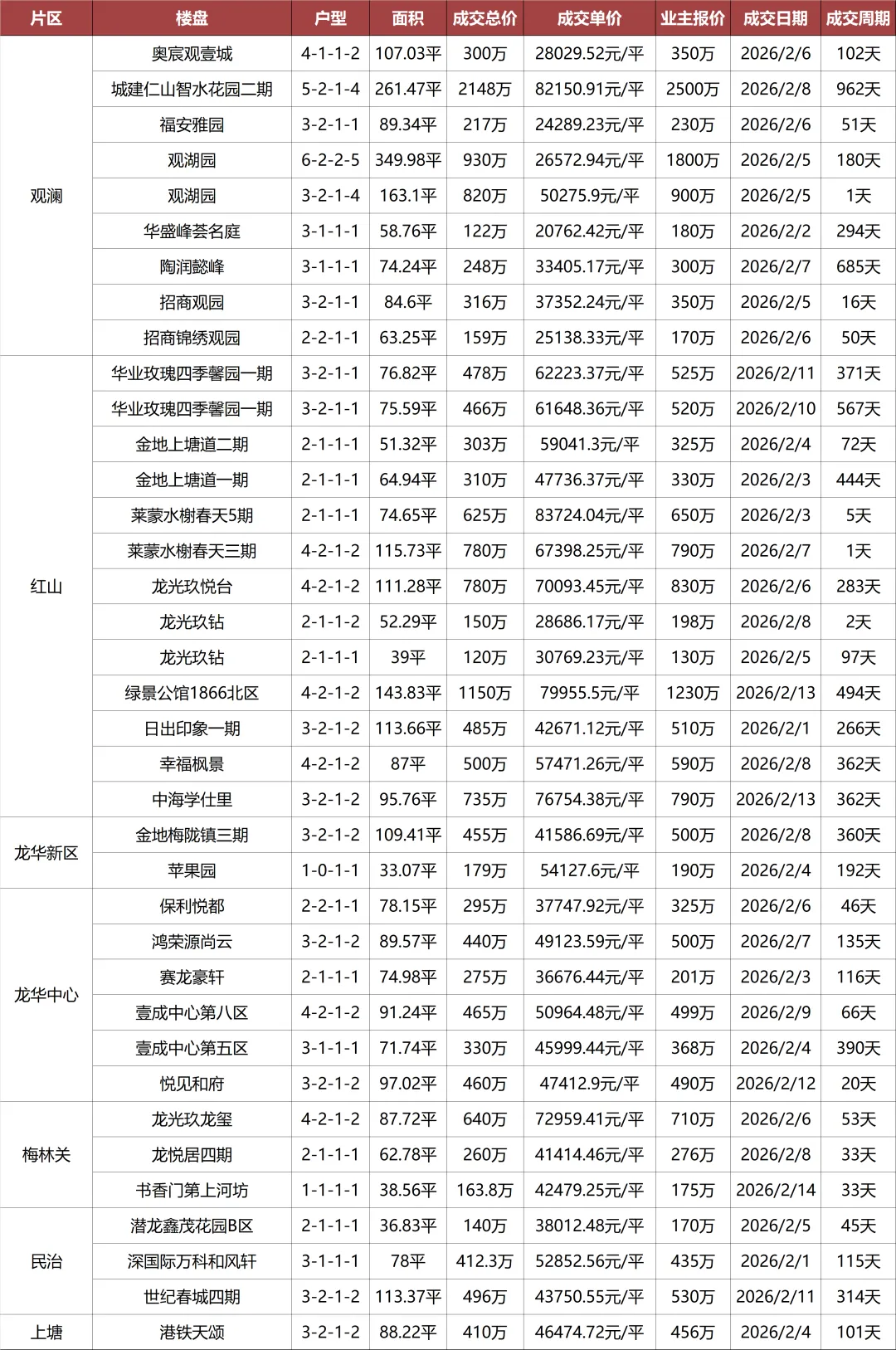 下面深圳二手房1月份成交数据奉上!数据成交时间为1.1-1.15日。顺便点个关注,获取最新楼市成交数据,点击下方公众号名片,即可关注!