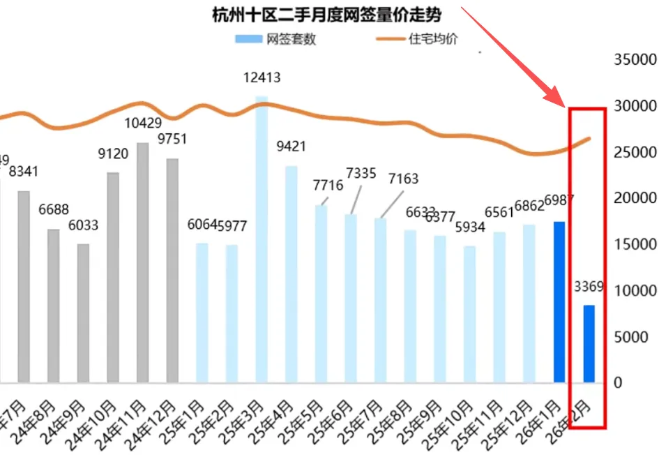 以上为26年2月杭州二手房数据,从套数、均价、面积段以及总价段进行解析。