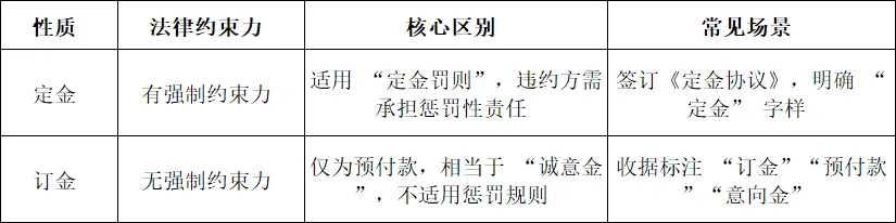 • 定金协议务必书面签订,明确 “定金” 字样、金额、付款方式、违约情形、定金处理方式,避免口头约定;