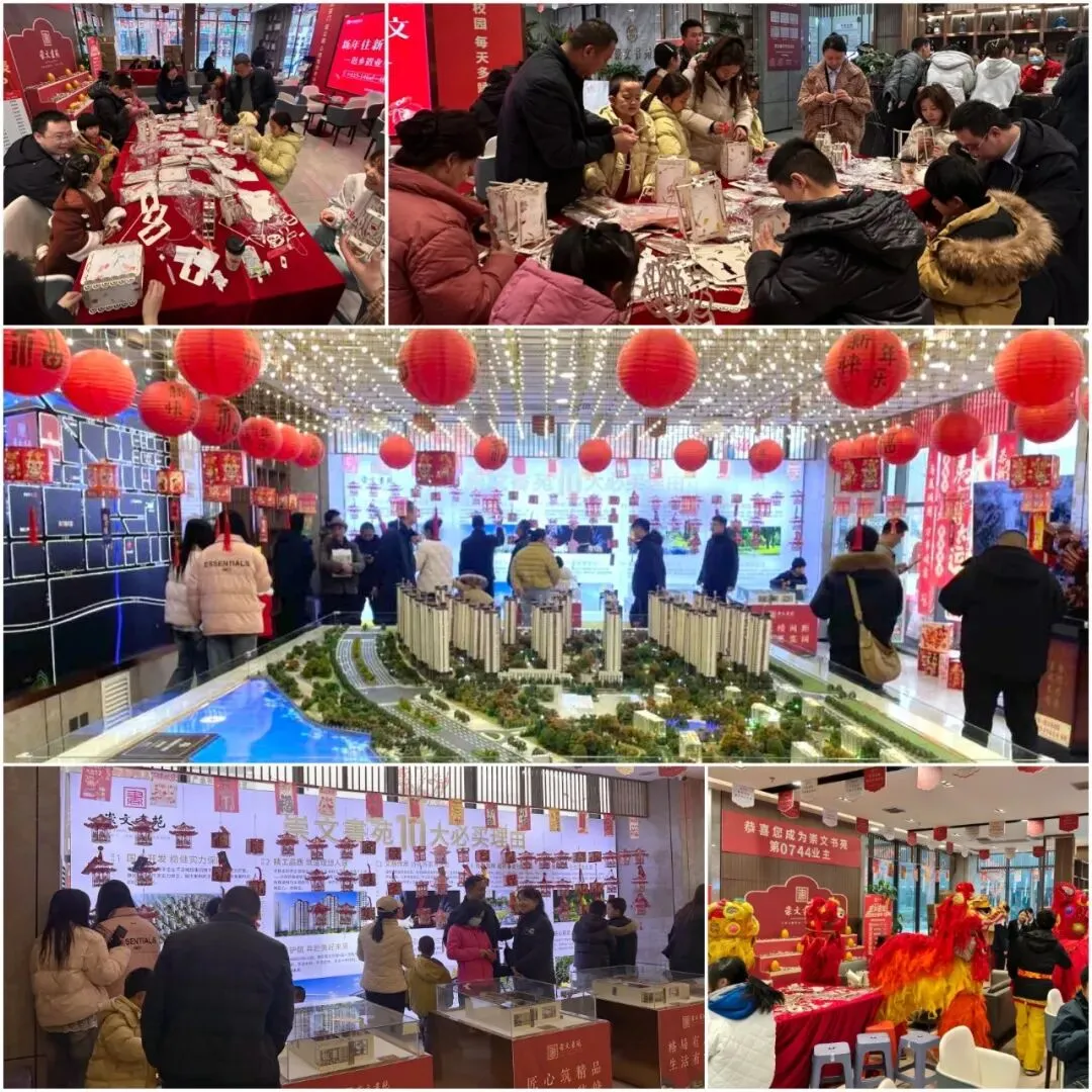 活动在欢腾喜庆的祥瑞社火迎接仪式中正式拉开序幕。营销中心门前锣鼓喧天,身着节日盛装的社火队伍伴着欢快鼓点尽情表演,春官手持折扇,一句句饱含祝福的诗句脱口而出,现场洋溢着浓厚的节日氛围。步入营销中心,火红灯笼下悬挂着数百条融合古诗词、成语及特色灯谜,吸引来宾们或凝神思考、或热烈讨论,在智慧碰撞中尽享传统文化的乐趣。手工体验区内,“手工花灯制作”活动吸引众多家庭踊跃参与。在工作人员的悉心指导下,家长与孩子们分工协作,裁剪、拼贴、装饰,一盏盏造型别致、色彩斑斓的花灯逐渐成型,现场欢声笑语不断,其乐融融。