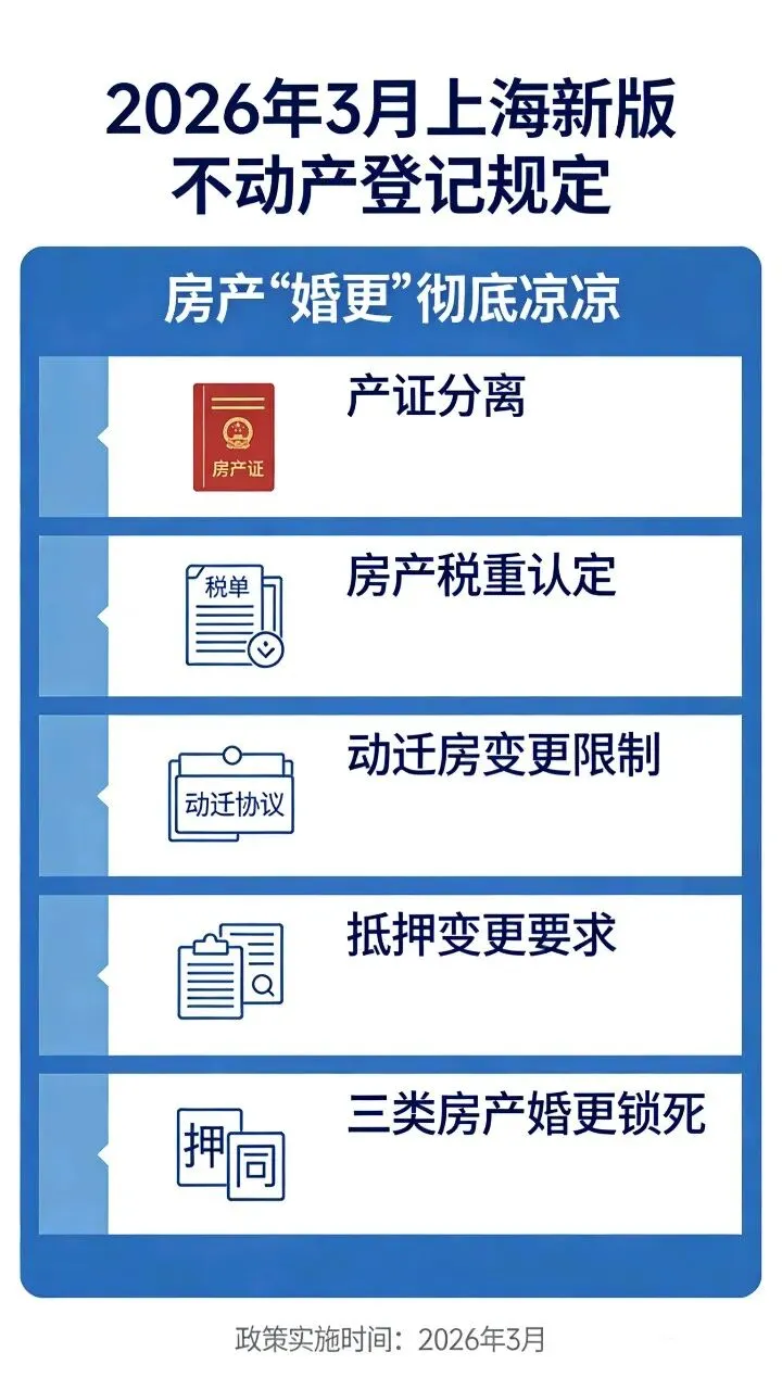 影响:这是封堵 “婚更” 漏洞的终极手段。炒房路径被切断,无法通过 “婚更 + 离婚” 绕开限售。普通家庭自住不受影响,但资产处置、产权规划需提前规划。