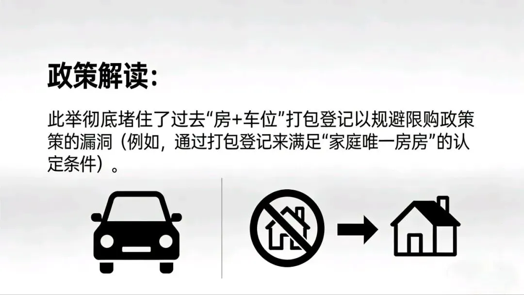 影响:业主可灵活处置(卖房留车位、卖车位留房);交易更透明,避免捆绑溢价。