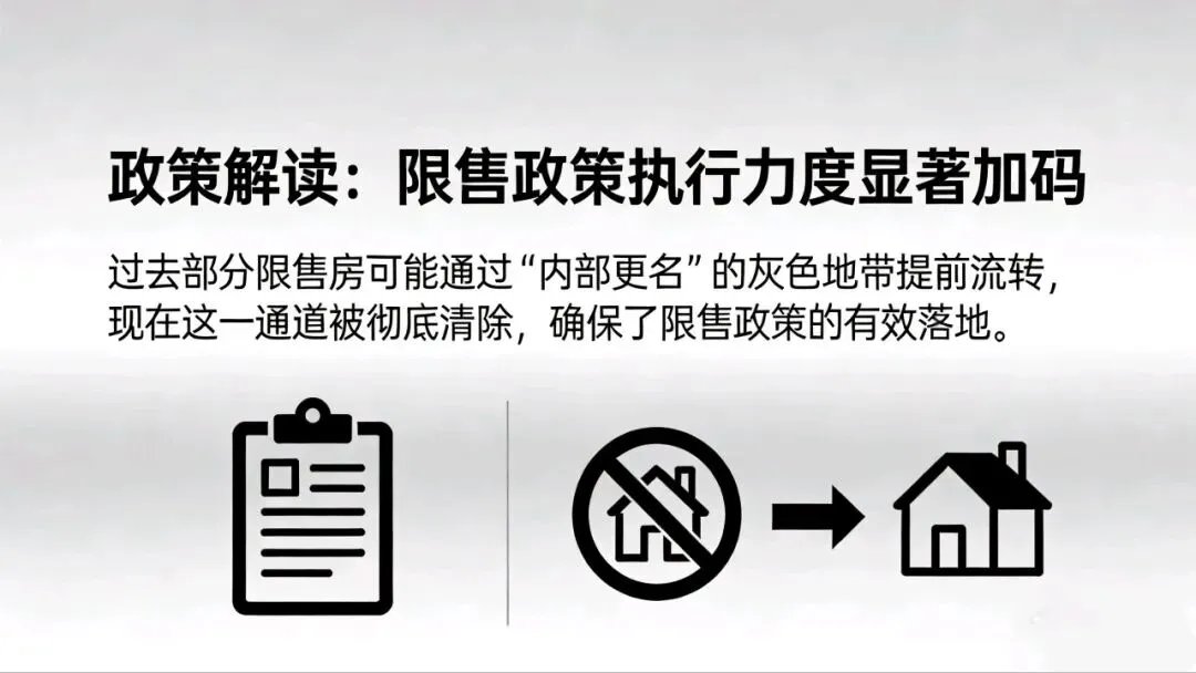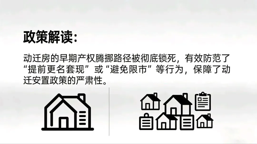 影响:锁死动迁房早期产权腾挪路径,保障动迁安置政策严肃性。减少动迁房 “提前入市” 冲击,稳定二手房供应节奏。