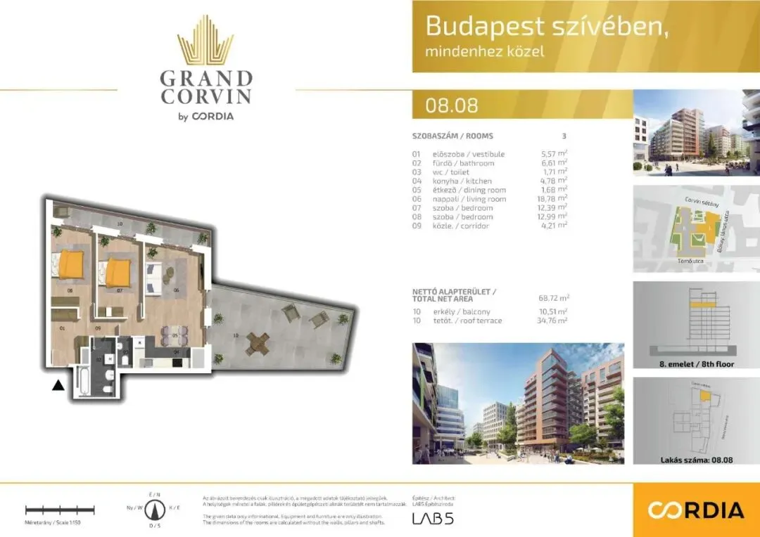 项目位于 Corvin 长廊核心步行街区,这里被公认为: