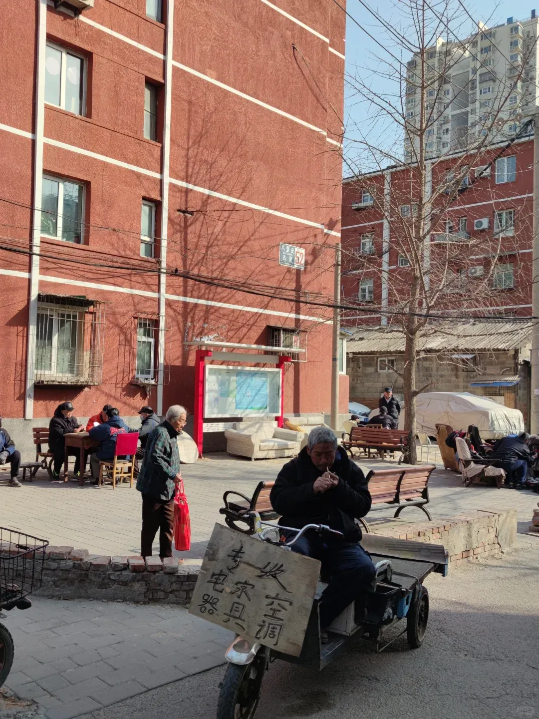 你看这种红砖老楼,线是乱点,楼道也不一定香,但下楼买菜、修锁、配钥匙、孩子上学,都是抬腿的事。